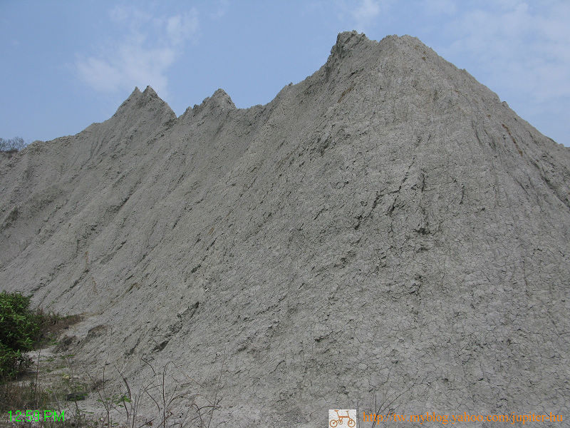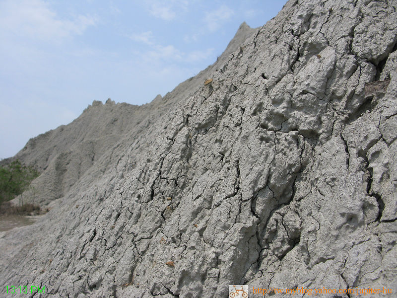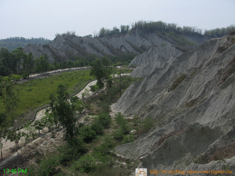 然而地層變動,河床推昇百公尺高,造成溪水急劇沖刷表面2~10公尺的礫石層,因而露出常年堆積於河底的泥岩層。而這種名為「青灰岩」的泥岩層,質地鬆 散,又不會蓄水,雨水沖刷下,就隨水流往下滑,形成一條條的「雨溝」,就是現今看到的「惡地形」。![]()