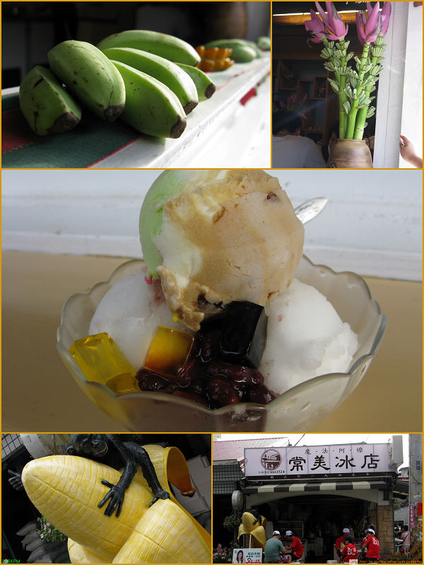 - 常美冰店 地址:高雄縣旗山鎮文中路99號電話:07-6612524 美味度:★★★ 推薦理由:純香蕉冰質地細緻,綿密,香蕉油香味十足,適合喜愛古早味的人。