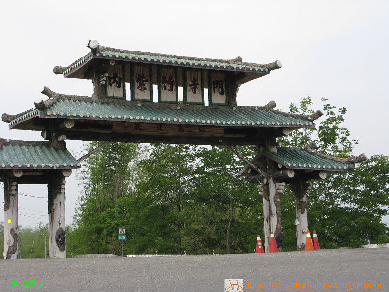 ▲內門紫竹寺的牌樓,在旁邊的涼亭用餐