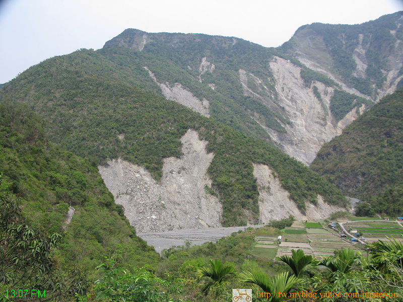▲遠處的山都有崩落現象,看來未來下雨,還會再跨~