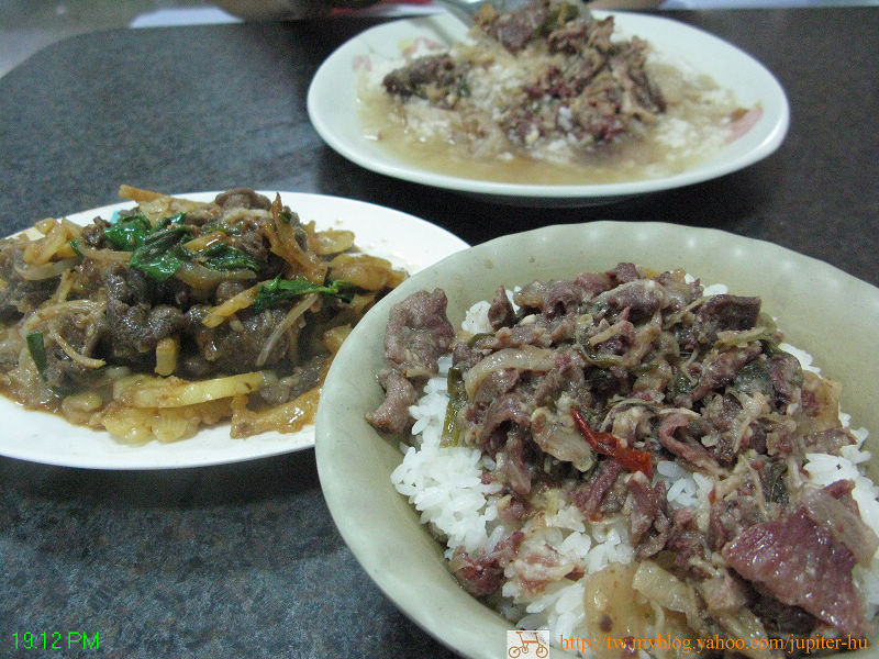 晚餐開車前往鄰近四湖鄉市區(約10Km)的「榮味羊肉飯」,這家為[319鄉鎮護照]推薦。Jupiter叫了羊肉飯、YSL點羊肉燴飯及苦瓜羊肉;其中羊肉燴飯是超甜