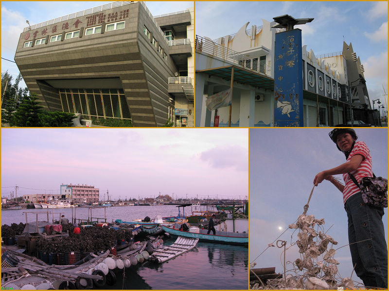 8:30am離開民宿,開車前往金港村的[馬蹄蛤主題館]。看來Jupiter/YSL是今天第一位客人。[馬蹄蛤主題]館位於魚塭區中,政府設立的指標不太明 顯,不過GPS設定[金港],進入市區後注意找[龍臺宮],到當地再問村民,就沒問題了。