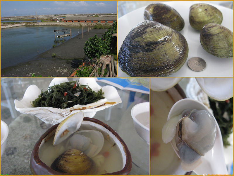 阿姨還說,馬蹄蛤通常要養個2~5年,才足夠大到可以吃,而且因屬於鹹水,需至外海放養,不能用魚塭的方式,同時還必需用特殊的藻類餵食;相較於淡水的 蜆,只需數個月至半年的培養,馬蹄蛤的投資獲益過長,使得投入的人只有曾館長一人。這裡最大的馬蹄蛤為七年,可以長得像手掌大一般,阿姨說曾有三個日本人 來,一共吃掉12顆七年生的馬蹄蛤,花掉台幣3600元,等於平均一顆要價300元。而尺寸越大,每斤的價格就越貴,當然肉質也更佳~