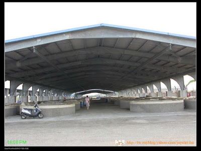 。Jupiter/YSL先到達鄉公所設立的酸菜園區,在鐵皮屋下,有一窟窟像游泳池一般的圓形池子,這裡就是裝著以粗鹽醃製芥藍菜,發酵成為「酸菜」的場所。(註:古早時期是用大型檜木桶)。這裡的池子是民間廠商向鄉公所承租的場地,雖然酸菜異味很重,但這裡的環境卻異常乾淨,可見得很用心維護環境整潔。