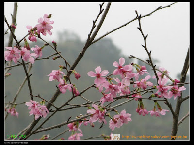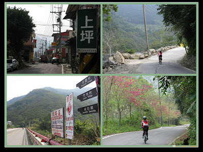 由竹122縣道進入五峰鄉,經過上坪老街後,左轉過上坪溪,即開始爬坡。接近花園部落前,開始看到整排的紅色的山櫻開了~~