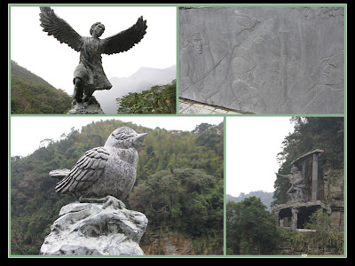 在「梅嗄蒗部落」牌樓旁,有一條美麗的橋,每個橋柱上都有泰雅族的雕刻,每個橋面都有泰雅族人的石板璧畫。YSL特別注意到有一隻鳥--這隻是泰雅族的神鳥「Sileq」(譯為西雷克)傳說